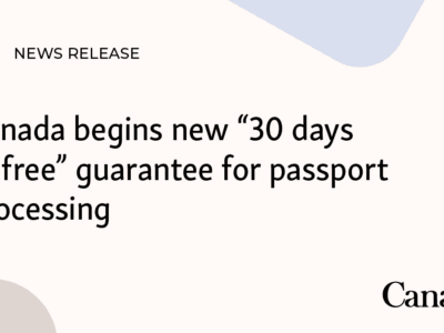 Canada begins new “30 days or free” guarantee for passport processing