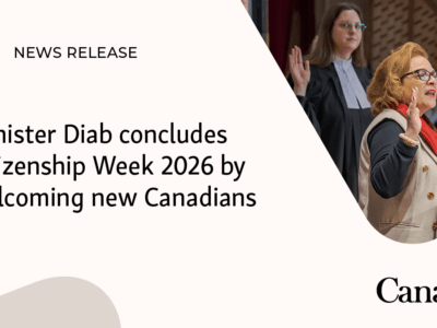 Minister Diab concludes Citizenship Week 2026 by welcoming new Canadians
