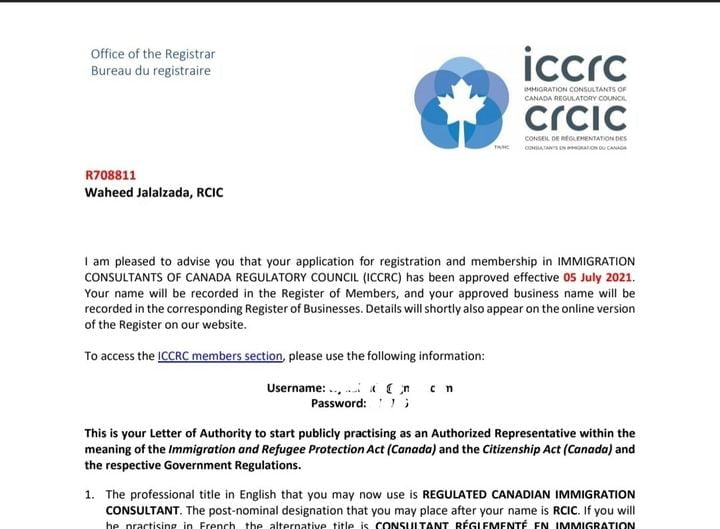 پس از حدود چهار سال درس، مطالعه و کار در عرصه مهاجرت کانادا؛ و پس از سپری کردن ِ موفقانهی امتحان مسلکی مرجع رسمی دولت کانادا که به نام آی سی سی آر سی یاد می شود، امروز رسماً جواز کار خود را دریافت کردم و اکنون می توانم منحیث مشاور رسمی و قانونی مهاجرت در کانادا کار کنم.